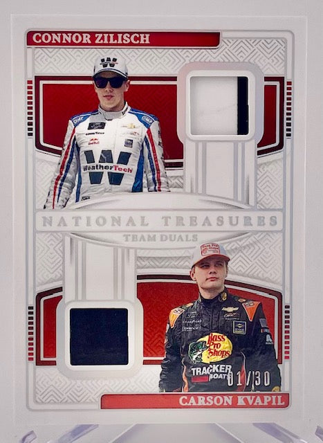 Connor Zilisch/Carson Kvapil 2025 Panini National Treasures No.TD-ZK #01/30 Relic Single Card