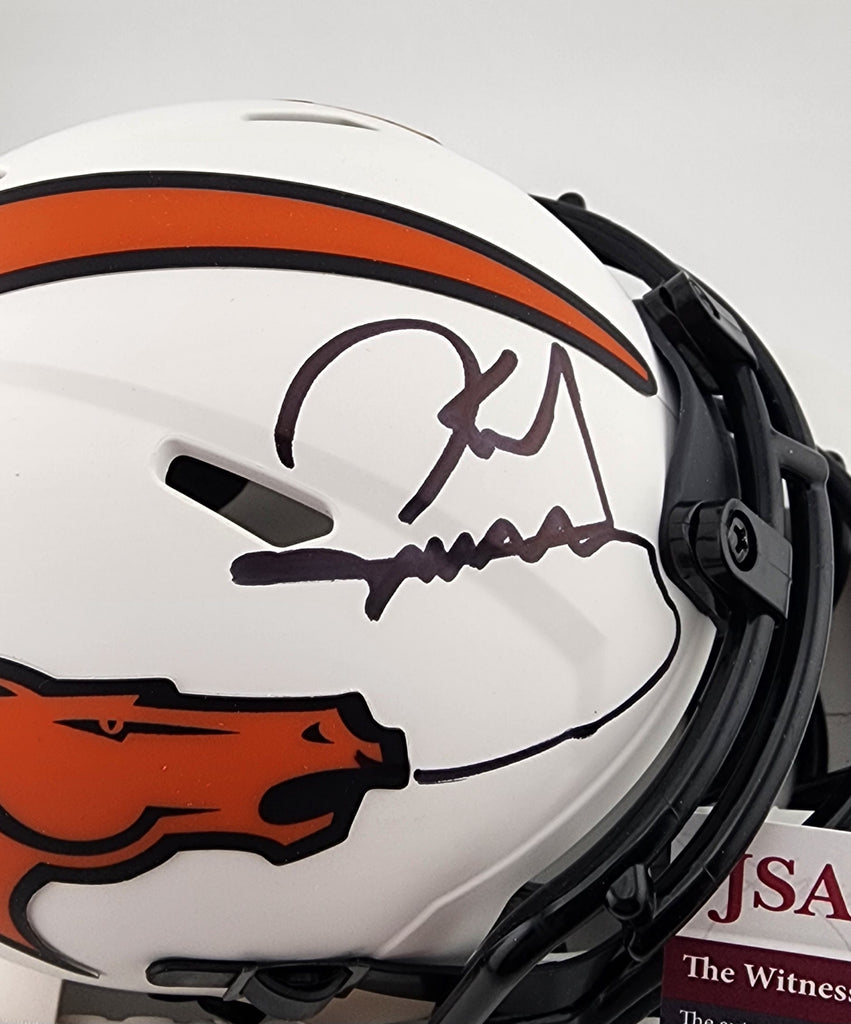 The Mini Helmet is a half scale replica of one of the most popular new helmet introductions in Riddell's history. It's a must have for the serious collector. Includes interior padding and a 4-point chinstrap. Official colors and decals. Ideal for autographs. Approximately 5" tall. Made By Riddell. Pictures may vary.