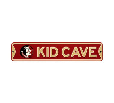 Made in the USA, this Kid Cave Street Sign is designed to look just like the road signs from the 1950's. This officially licensed sign is made of heavy-duty steel and automotive grade enamel that won't chip or fade. Hang it in the game room, bar, or fan cave and show your team pride. Fans will be impressed by the high quality look and feel!