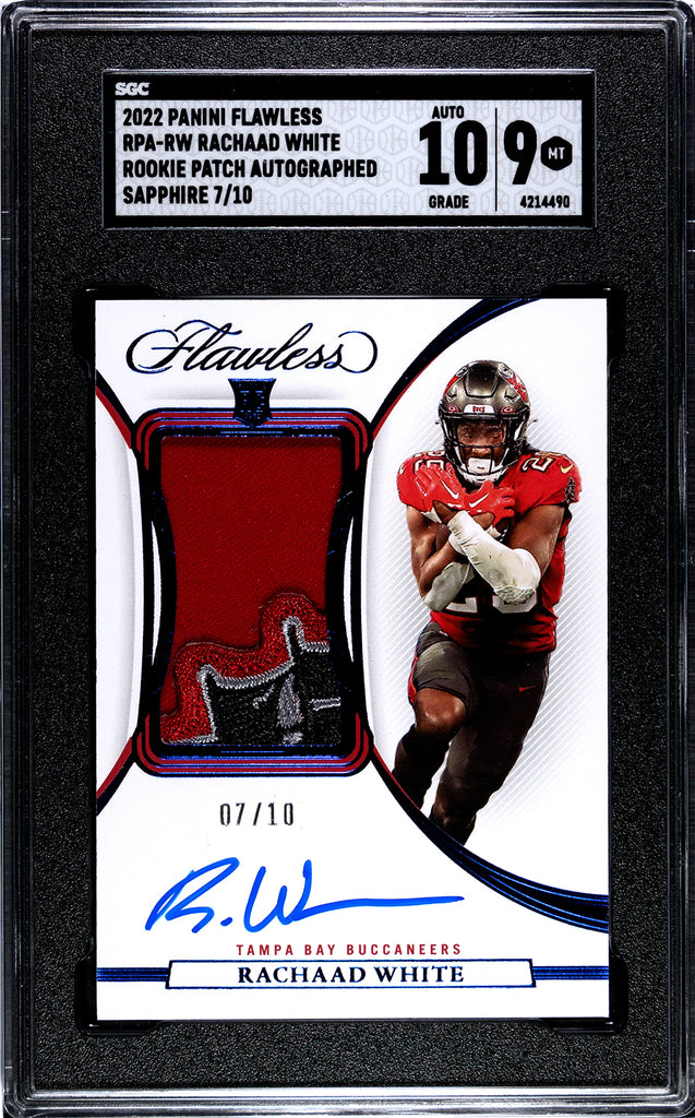 Buccaneers Rachaad White 2022 Panini Flawless No.RPA-RW #07/10 SGC Graded 9 Autographed Relic Rookie Single Card