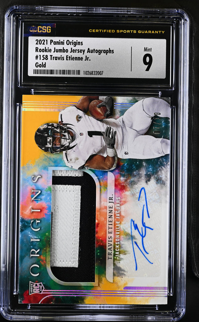 Jaguars Travis Etienne Jr 2021 Panini Origins No.158 #07/10 CSG Graded 9 Autographed Relic Rookie Single Card