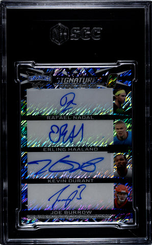 Messi/Alcaraz/Curry/LeClerc/Nadal/Haaland/Durant/Burrow 2023 Leaf Vibrance No.VS8-3 #1/1 SGC Graded 7 Autographed Single Card