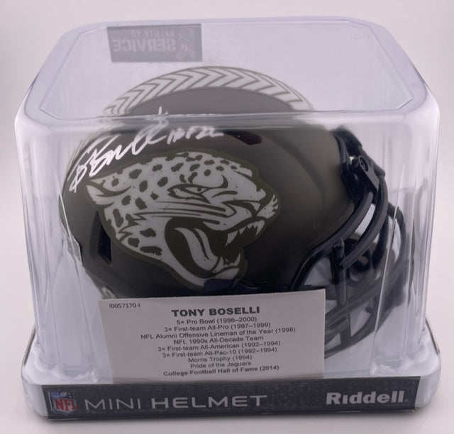 Jaguars Mini Helmet Speed Salute to Service - Tony Boselli - Autographed w/ Tristar Certificate of Authentication