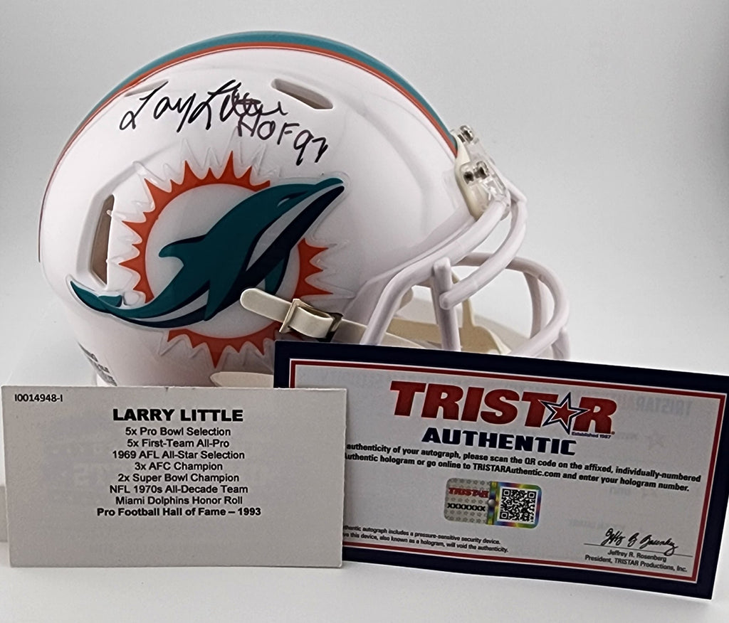 Dolphins Mini Helmet - Larry Little - Autographed w/ Tristar Certificate of Authentication