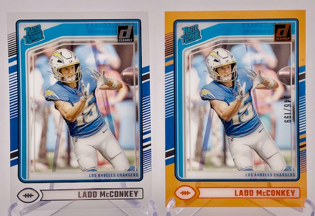 Chargers Ladd McConkey 2024 Panini Clearly Donruss No.68 #046/199 & Base (Lot of 2) Single Card