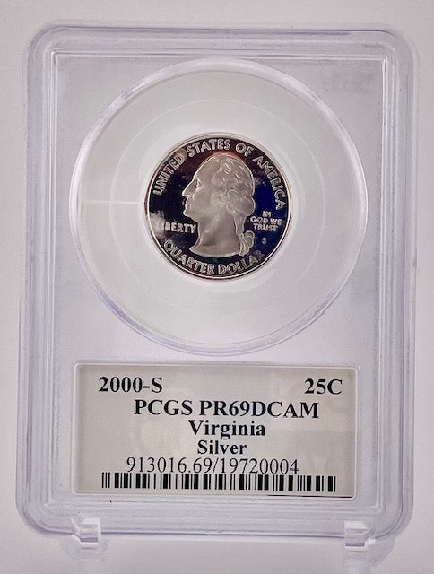 2000-S $0.25 Cent Piece Coin - Virginia Silver PCGS Graded PR69DCAM