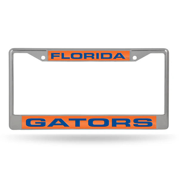 Gators Laser Cut License Plate Frame Silver w/ Orange Background